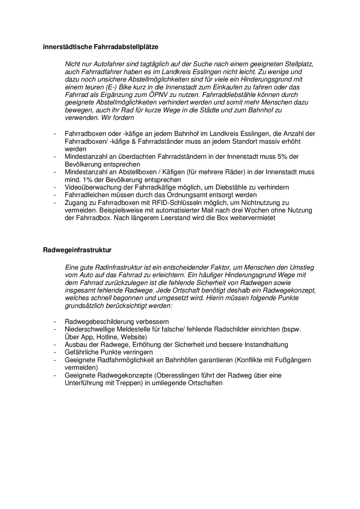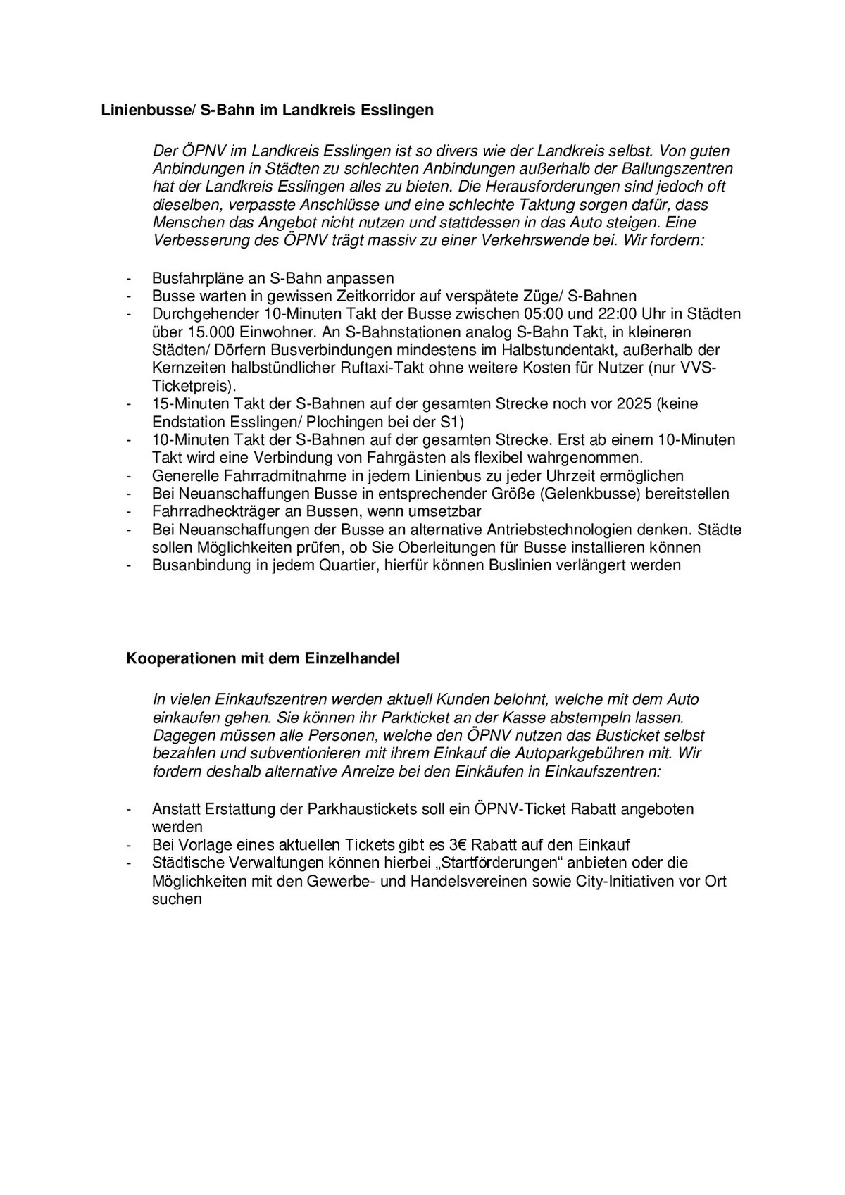 - Verbesserung des Radwegenetzes sowie Fahrrad-Mitnahme in Bussen auch tagsüber an Werktagen